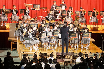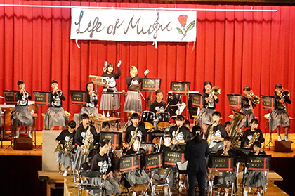 吹奏楽部の舞台発表です。みんながよく知っている曲も多く、盛り上がりました。最後はアンコールの演奏もあり、迫力ある演奏が楽しめました。