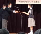 社会を明るくする運動の標語の部で、3年3組の葛原碧さんが優秀作品賞に選ばれ、立派...