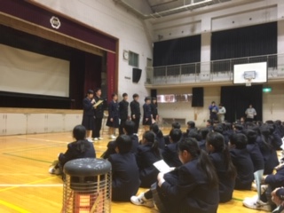 生徒会執行部より、手作りの冊子を用いて、学校紹介が行われました。