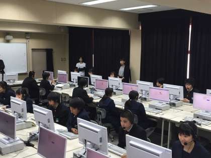 パソコンの画面を見ながら、ヘッドフォンから流れる質問に対して、英語で答えるという調査です。特に不具合もなく、3年生は真剣な表情で受験していました。