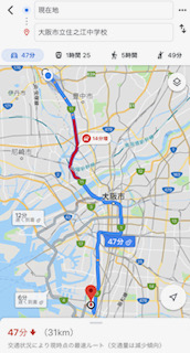 大阪府池田市に入りました。 渋滞している区間があるようです。