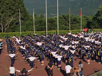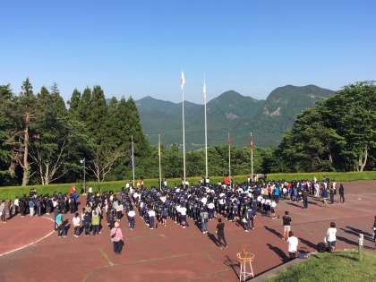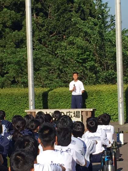 朝の集いの様子です。ぐっすりと眠った生徒たちは、元気いっぱいに挨拶をしていました。