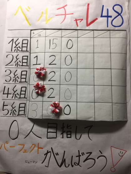 1年生が取り組んでいたベル前着席、遅刻ゼロキャンペーンでしたが、全クラスでゼロを達成しました!