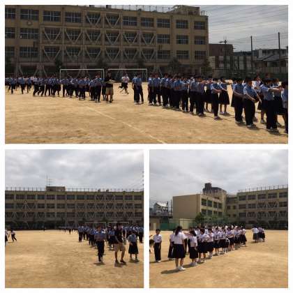 昨年度よりも、生徒数が増えていますが、全員が運動場に集合するまでの時間は1分以上短縮できています。