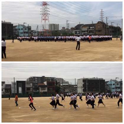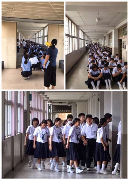 運動場に避難した後、地震による津波を想定して、校舎4階に避難しました。