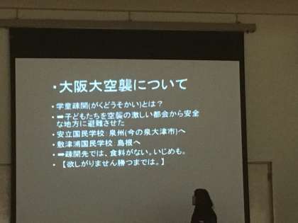 平和学習のスタートとして、1年生では大阪大空襲のことを学びました。