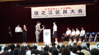 優秀賞の近藤さんは、7月15日に住之江区民ホールで行われた、住之江区民大会での表彰式にも参加し、表彰されています。