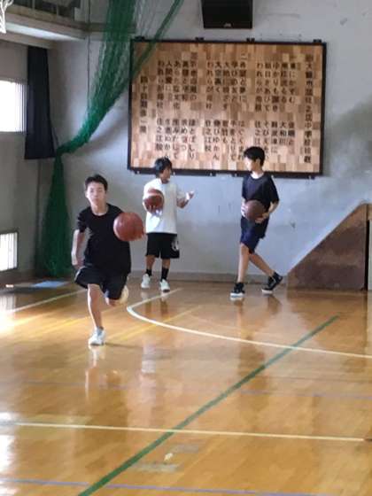 昨日の男子バスケットボール部は、3年生の学習を考慮して、時間を分けて活動していました。写真は下級生の練習風景です。