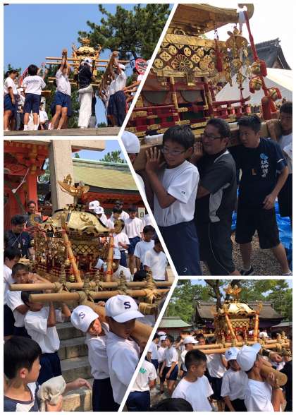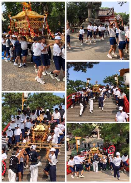8月1日の神輿渡御に参加するため、7月28日に住吉大社で神輿を担ぐ練習を行いました。