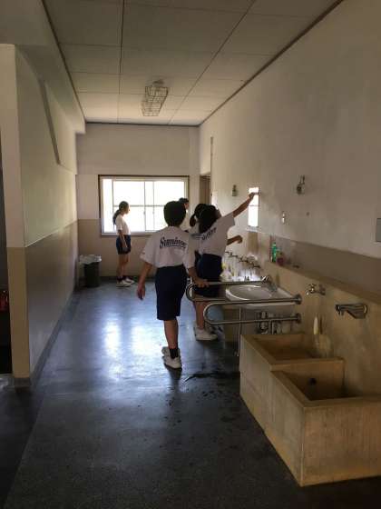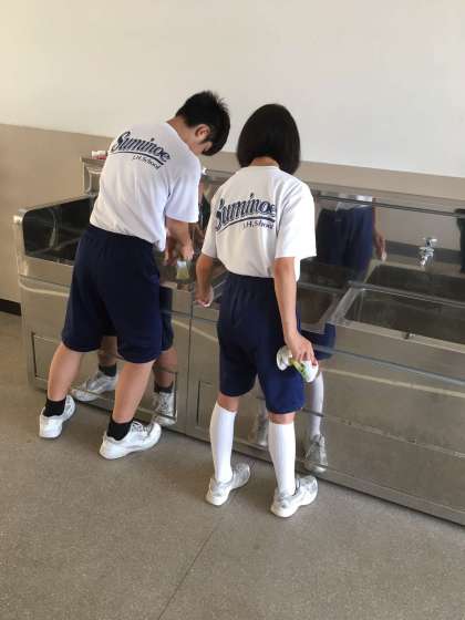 吹奏楽部が、校内のトイレや手洗い場の清掃をしてくれました。