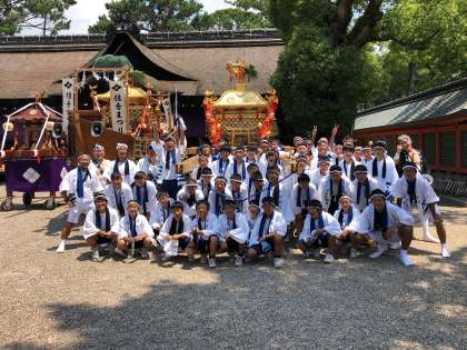 法被を身に纏い、準備は整いました。もうすぐ、住吉大社を出発します。