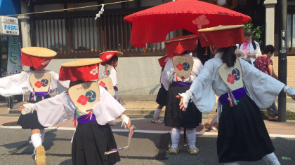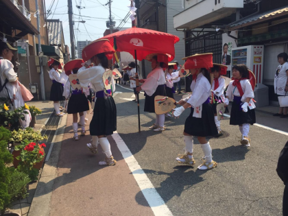 住之江中学校の生徒も住吉踊りの童女として踊っています。暑い中、頑張っています。