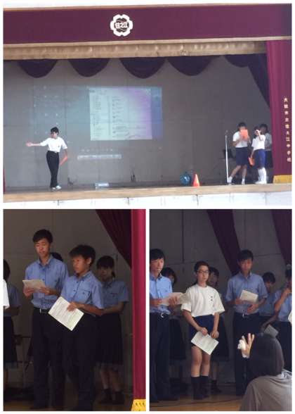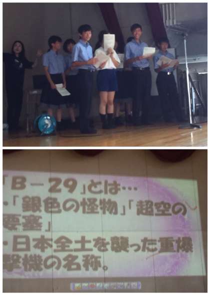 写真は1年生の様子です。1学期に取り組んだ平和学習について、プロジェクターなども使って発表します。まだまだ練習不足があって、最初はスムーズに進まなかったものの、練習を重ねるごとに上手くなってきました。