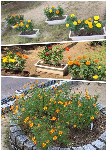 生徒が植えてくれた草花も、しっかり水をもらって、元気には花を咲かせています。