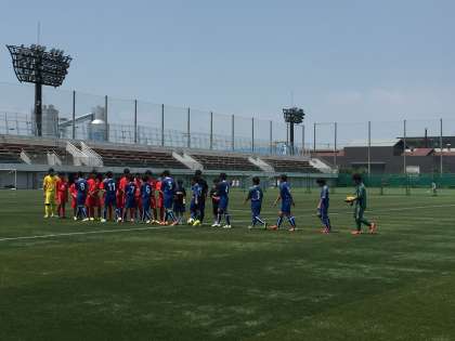 予選リーグ最終戦を、南津守さくら公園グランドで行いました。人工芝のスタンドもついた立派なグランドでの試合です。