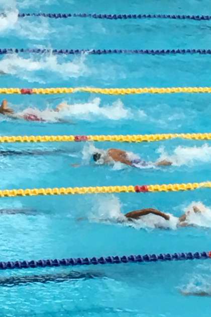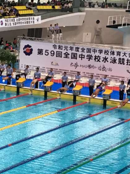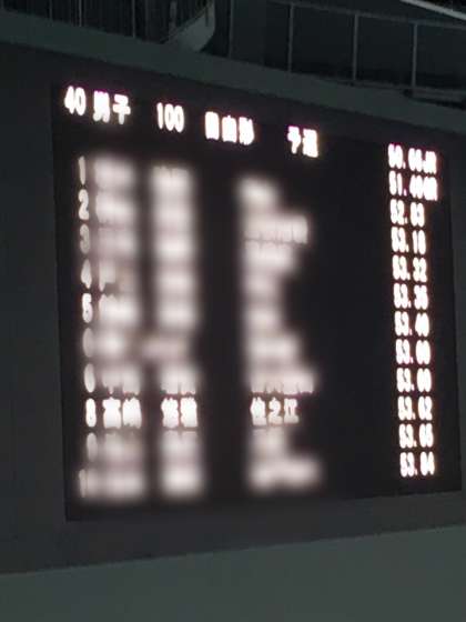 男子100m自由形予選では、高嶋くんが後半に追い上げて、見事に予選を通過、午後の決勝にのぞみます。