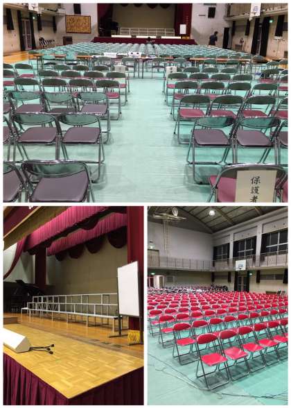 部活動終了後、各部の生徒が体育館の会場を設営してくれました。先生の指示を聞いて、手際よく丁寧にやってくれました。設営してくれた生徒のみなさん、ありがとうございました。