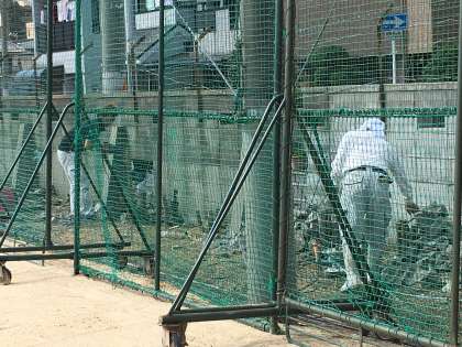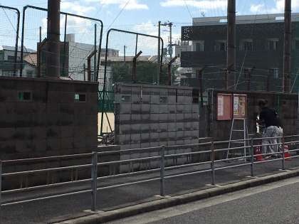 昨日から運動場西側ブロック塀の改修工事を行っています。老朽化している部分を一部新しいものに入れ替えています。