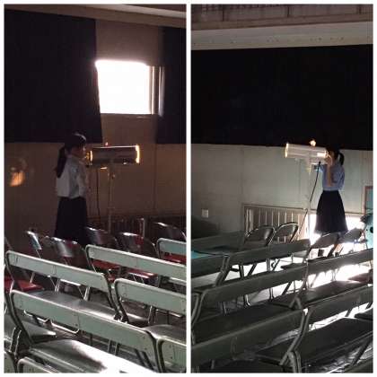 英語部のリハーサルの様子です。証明の練習もしっかりできました。