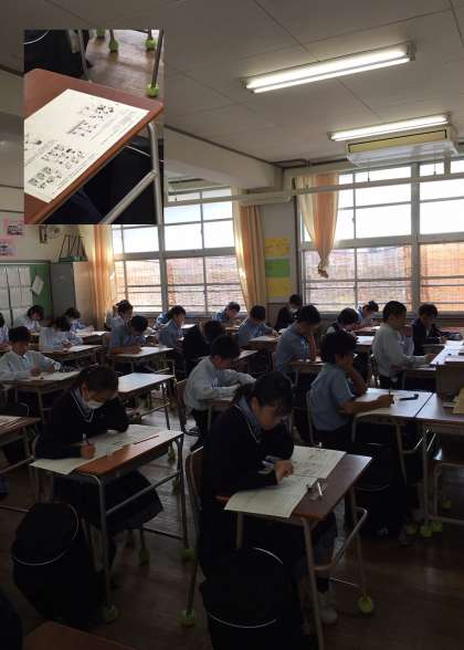 2限目、1年生の英語、3年生の理科の様子です。英語では、リスニング問題にも取り組み、そのスピーカーから流れる音声に集中しています。