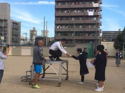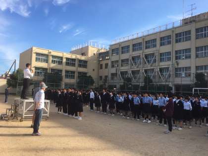 前期の取り組みを踏まえて、リーダーが中心となって、いいクラス、学年、学校を作ってください。互いに自主性・自発性を高めて、ワンチームになって、住之江中学校を盛り上げてほしい。