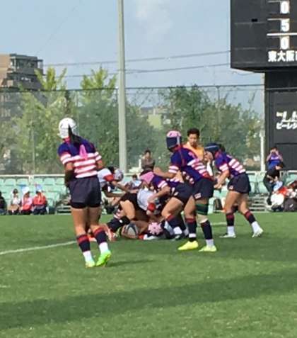 本日、花園ラグビー場で、全国ジュニアラグビーフットボール大会女子の部関西地区予選が行われました。大阪代表チームとしてフル出場し、鋭いタックルと力強いアタックでチームに貢献し、見事優勝しました。全国大会に向けて、さらに練習に励んでください。