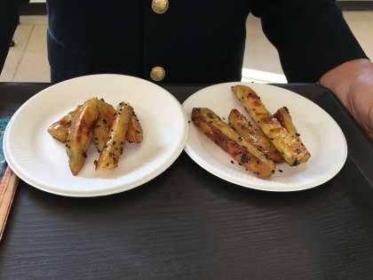 サポートルームでは、先週に引き続き、今日、大学いもを調理しました。こんがりと揚げたさつまいもにみつをからめて、カリッとできあがりました。ごちそうさまでした。