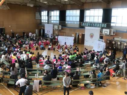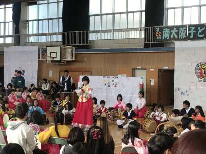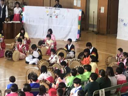敷津浦小学校で開催された、南大阪子ども民族音楽会に、3名の生徒が参加しました。他の中学校と合同で民族楽器の演奏を行いました。