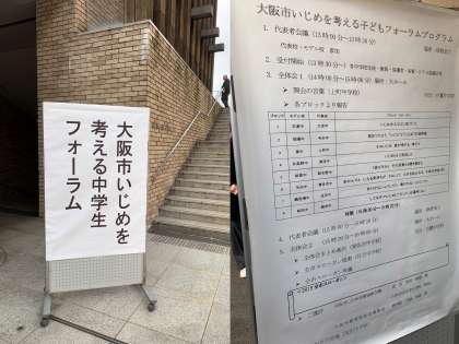 午後2時より、阿倍野区民センターにおいて、『大阪市いじめを考える中学生フォーラム』が開催されました。