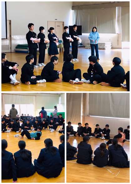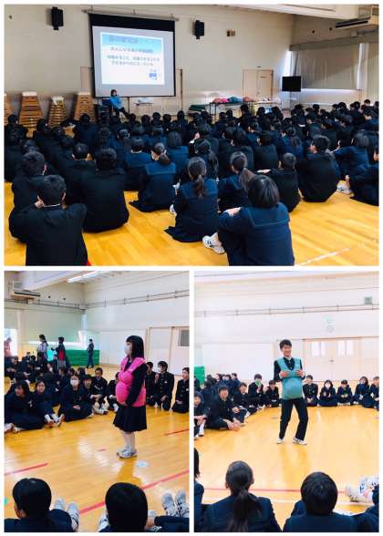 2年生では、午後の時間を利用して性教育を行いました。妊婦体験ジャケットを着用したり、模型の赤ちゃんを抱いてみたりと、擬似体験をとおして、いのちについて考える機会となりました。