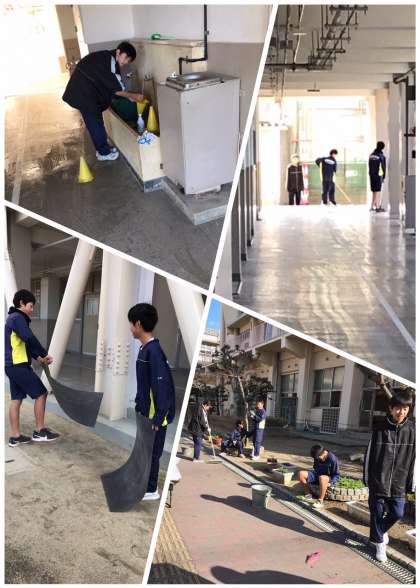 今年の活動の締めくくりとして、正門周辺や部室、廊下、砂場の大掃除を行いました。