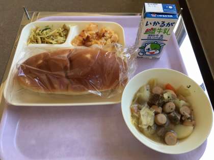 3年生は実力テストのため下校しましたが、1.2年生にとっては久しぶりの給食でした。