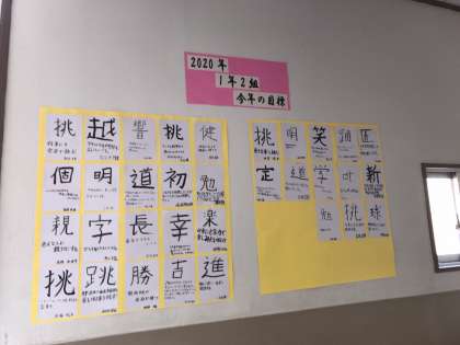 4月には2年生になりますが、先輩として胸を張れるように今年の目標を立てたクラスもあります。正月らしく書き初めで漢字一文字を丁寧に書いていました。
