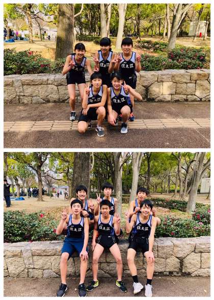 大阪市中学校駅伝競走大会がヤンマーフィールド長居周辺周回コースで行われ、男女それぞれの部に参加しました。上位進出はなりませんでしたが、最後までたすきをつなげ走り切りました。