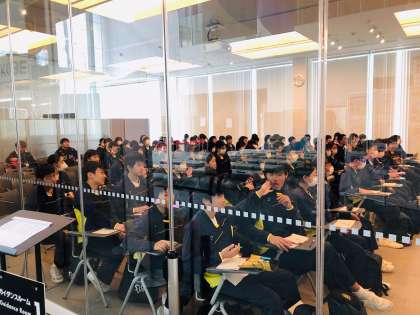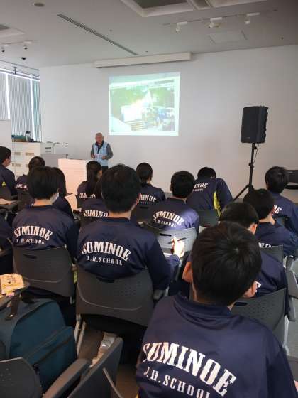 人と防災未来センター内で、体験談を聞いたり、班別で見学をしています。