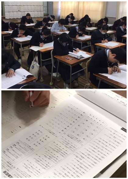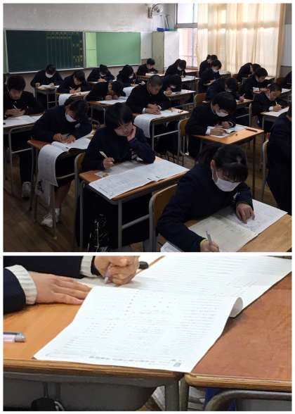 各自が希望の級を受験しました。2年生は、先週の英語検定に続いての受験です。みんな、真剣な面持ちで試験に取り組んでいました。日頃の成果を発揮し、精一杯頑張っています。