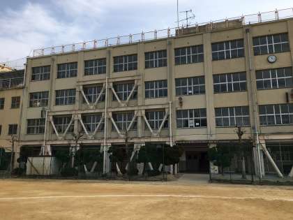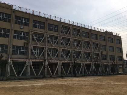 先週までに、老朽化していた防球フェンスの撤去が完了しました。運動場から校舎を見たときの風景も少しすっきりしたように見えます。ボールが校舎に飛び込まないよう、可動式の防球ネットを並べています。