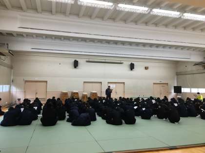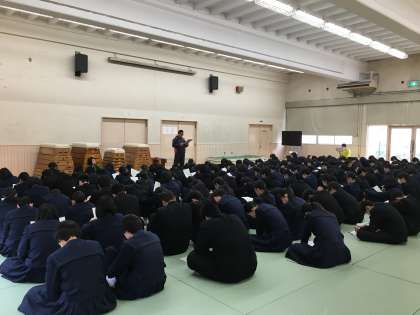 6限に3年生に対して、月曜日からの私立高校入試に向けての事前指導を行いました。進路指導の先生から、前日及び当日の注意事項等についてプリントを使って説明がありました。体調を整え万全の状態で受験できるようにしましょう。