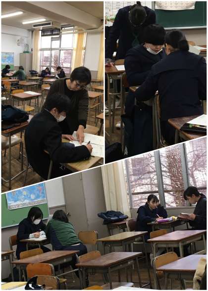 午後から出願に出発しました。大きく遅れることもなく出願を終え、学校に帰ってきてからは、受験についての諸注意や持ち物を確認しました。