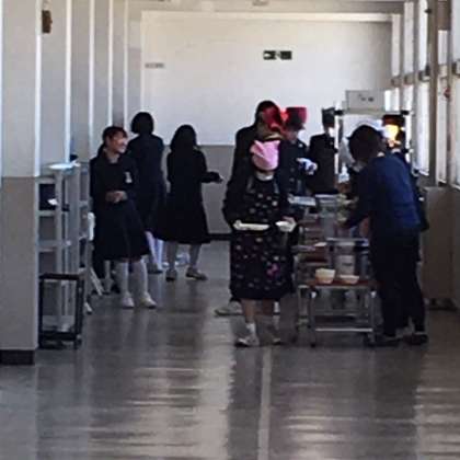 今日は、1,2年生のテストのため、3年生のみの給食です。