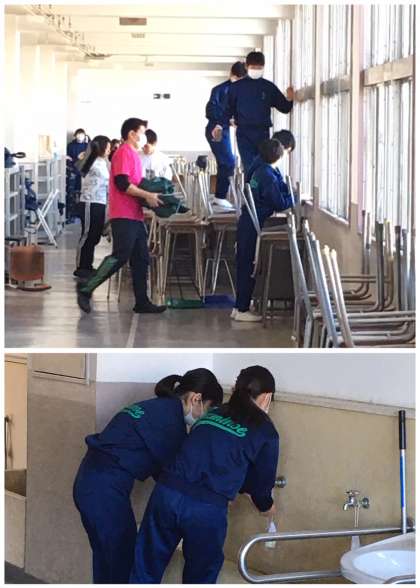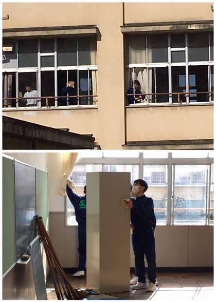 1,2年生の登校日に合わせて、3年生の有志の生徒が卒業前にできなかった教室の整備をしてくれました。きれいな状態にして次の代に引き継いでいきます。