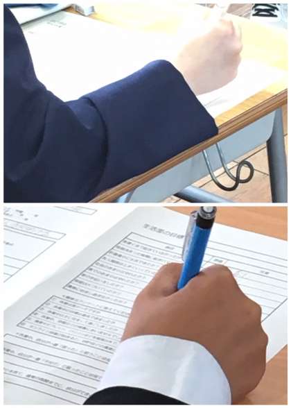 3年生は新しい学年の教室に入り、休業期間中のふりかえりを書いていました。