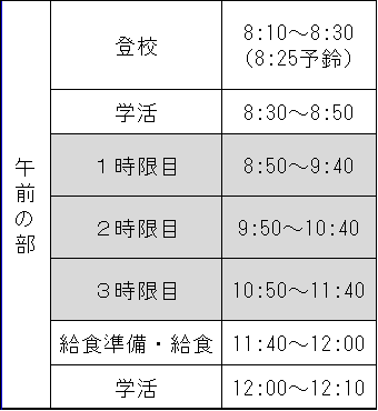 班ごとの時間割や登校時間については こちら からご確認ください。