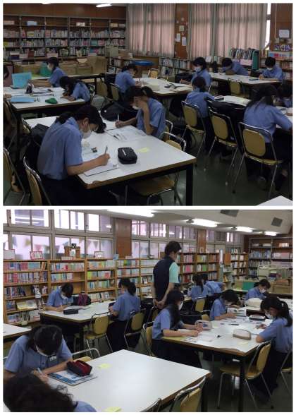 期末テスト1週間前となり、昨日から学校図書館でテスト前の学習会を行っています。