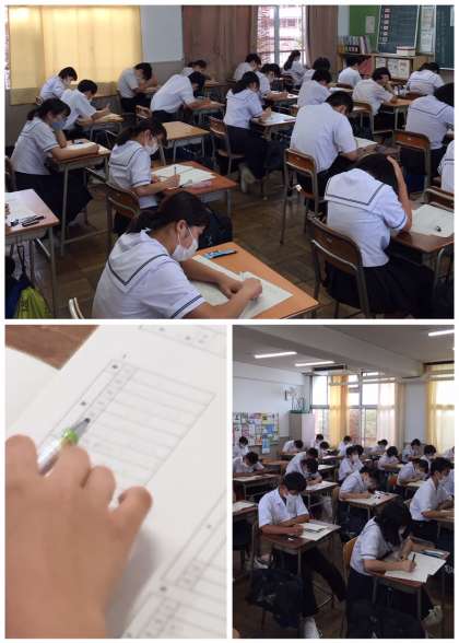学校休業の影響で、例年より遅れての実施となりましたが、今現在の実力をはかるため、全力で取り組んでいます。引き続き、来週は期末テストです。息つく暇もありませんががんばりましょう。