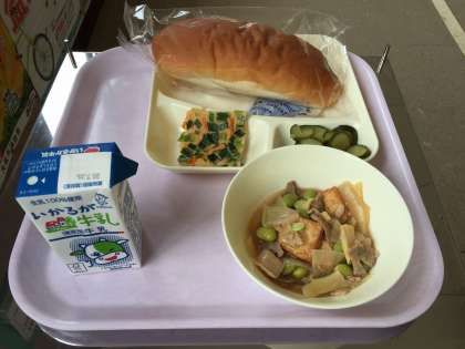 チヂミには食材を生かしたいろいろな種類がありますが、給食のチヂミは、にんじんとニラが入ったシンプルなものとなっています。