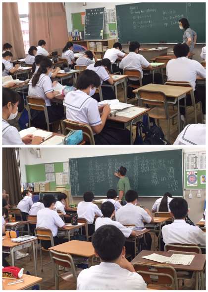 3年生の英語、数学、2年生の英語、国語の授業の様子です。2年生では、辞書を使った学習を行っていました。