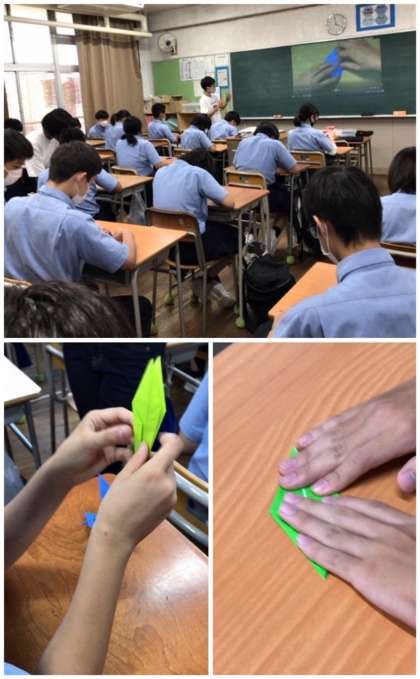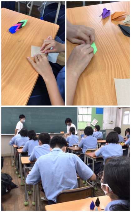 2年生は副班長と生活委員が文化発表会の作品制作の一環として鶴を折るので、その代表として放課後に、鶴の折り方を練習しました。