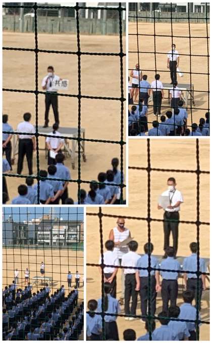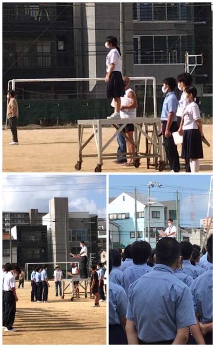 生徒会からは文化発表会と体育大会のスローガンが発表とともに、どちらもコロナ禍で出来ないことが多い状況ですが、まずは出来ることがあることに感謝しようという話がありました。