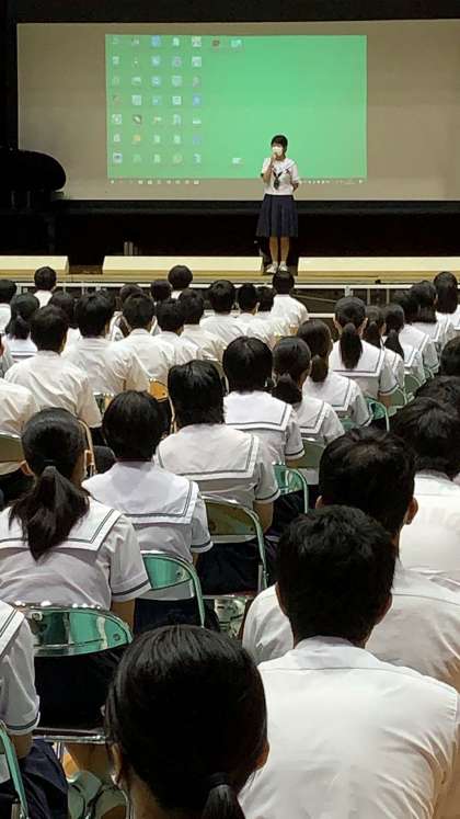 校長先生から、今回のテーマ『開華』〜咲き誇れ、心の華〜 をふまえてお話がありました。